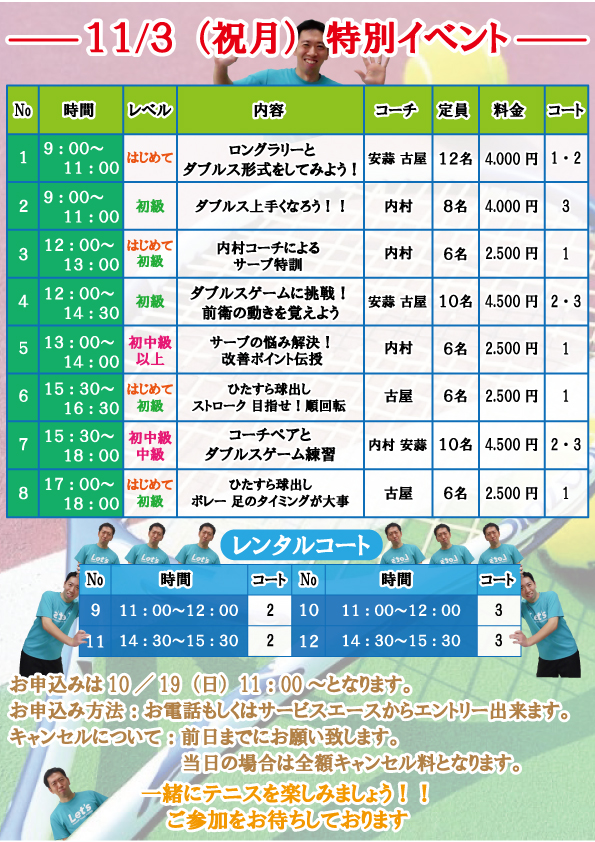 お申し込み受け付けは、10月19日(日)11:00スタート、